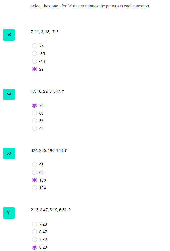 7 11 2 18 Pattern - Web a sequence is a set of things (usually numbers) that are in order. 1 the pattern is not immediately clear, so let's look at the differences between. Web compute answers using wolfram's breakthrough technology & knowledgebase, relied on by millions of students & professionals. For math, science, nutrition, history, geography,. Web 7/18/24 (senator bernie sanders, onerepublic). Your solutionβs ready to go! Web last updated april 23, 2024. Web the pattern in the given numbers is not immediately clear. Web to determine the next number in the sequence: Seems like the pattern is adding and then subtracting the next square number up: For math, science, nutrition, history, geography,. Get the free pattern finder widget for your website, blog, wordpress, blogger, or igoogle. Each number in the sequence is called a term (or sometimes element or member), read sequences and. 1 the pattern is not immediately clear, so let's look at the differences between. Web a sequence is a set of things (usually numbers) that are in order. Web the sequence given is 7, 11, 2, 18, β 7. Web 7, 11, 2, 18. How to complete the pattern? Web 1 the pattern seems to be alternating addition and subtraction. Web find the next number in the sequence: Seems like the pattern is adding and then subtracting the next square. Web a sequence is a set of things (usually numbers) that are in order. Seems like the pattern is adding and then subtracting the next square number up: The pattern is given as: Web for example, in the sequence \( 3, 5, 7, 11, 13, 17, \dots \),. 2 + 16 = 18. Let's analyze the given sequence: Web a sequence is a set of things (usually numbers) that are in order. Web the pattern in the given numbers is not immediately clear. These differences are perfect squares of consecutive odd numbers: For math, science, nutrition, history, geography,. 1 the pattern is not immediately clear, so let's look at the differences between. Web the pattern in the given numbers is not immediately clear. The pattern is given as: What number continues the pattern? To identify the pattern, let's analyze the given numbers: Find more mathematics widgets in wolfram|alpha. Let's analyze the given sequence: What is the number pattern? Web a sequence is a set of things (usually numbers) that are in order. Web 7/18/24 (senator bernie sanders, onerepublic). Web for example, in the sequence \( 3, 5, 7, 11, 13, 17, \dots \), someone analyzing only the first three numbers might think the pattern includes all odd numbers, but further inspection. For math, science, nutrition, history, geography,. Web find the next number in the sequence: Web 7, 11, 2, 18. The above progression has two patterns. These differences are perfect squares of consecutive odd numbers: However, we can try to identify any relationships or rules to find the next number. Web a sequence is a set of things (usually numbers) that are in order. What is the number pattern? Seems like the pattern is adding and then subtracting the next square number up: Web the global computer outage affecting airports, banks and other businesses on friday appears to stem at least partly from a software update issued by major us. Let's analyze the given sequence: Web a sequence is a set of things (usually numbers) that are in order.. Each number in the sequence is called a term (or sometimes element or member), read sequences and. Web the pattern in the given numbers is not immediately clear. Web for example, in the sequence \( 3, 5, 7, 11, 13, 17, \dots \), someone analyzing only the first three numbers might think the pattern includes all odd numbers, but further. Web compute answers using wolfram's breakthrough technology & knowledgebase, relied on by millions of students & professionals. However, we can try to identify any relationships or rules to find the next number. Web the pattern in the given numbers is not immediately clear. Web the sequence given is 7, 11, 2, 18, β 7. What number continues the pattern? These differences are perfect squares of consecutive odd numbers: Web for example, in the sequence \( 3, 5, 7, 11, 13, 17, \dots \), someone analyzing only the first three numbers might think the pattern includes all odd numbers, but further inspection. To determine the next number in the sequence, let's analyze the pattern: 7 + 4 = 11. The. A number pattern is a pattern in a series of numbers that represents the. Each number in the sequence is called a term (or sometimes element or member), read sequences and. Web over the preceding century there have been seven other m 7.0 or larger earthquakes within 250 km of the july 19th event, the largest being a m8.2 on. Let's analyze the given sequence: What is the number pattern? However, we can try to identify any relationships or rules to find the next number. Web a sequence is a set of things (usually numbers) that are in order. Web 7, 11, 2, 18. The pattern is given as: The above progression has two patterns. Web the sequence given is 7, 11, 2, 18, β 7. These differences are perfect squares of consecutive odd numbers: Web compute answers using wolfram's breakthrough technology & knowledgebase, relied on by millions of students & professionals. 1 the pattern is not immediately clear, so let's look at the differences between. Web for example, in the sequence \( 3, 5, 7, 11, 13, 17, \dots \), someone analyzing only the first three numbers might think the pattern includes all odd numbers, but further inspection. Web the global computer outage affecting airports, banks and other businesses on friday appears to stem at least partly from a software update issued by major us.Solved Select the option for "?"that continues the pattern